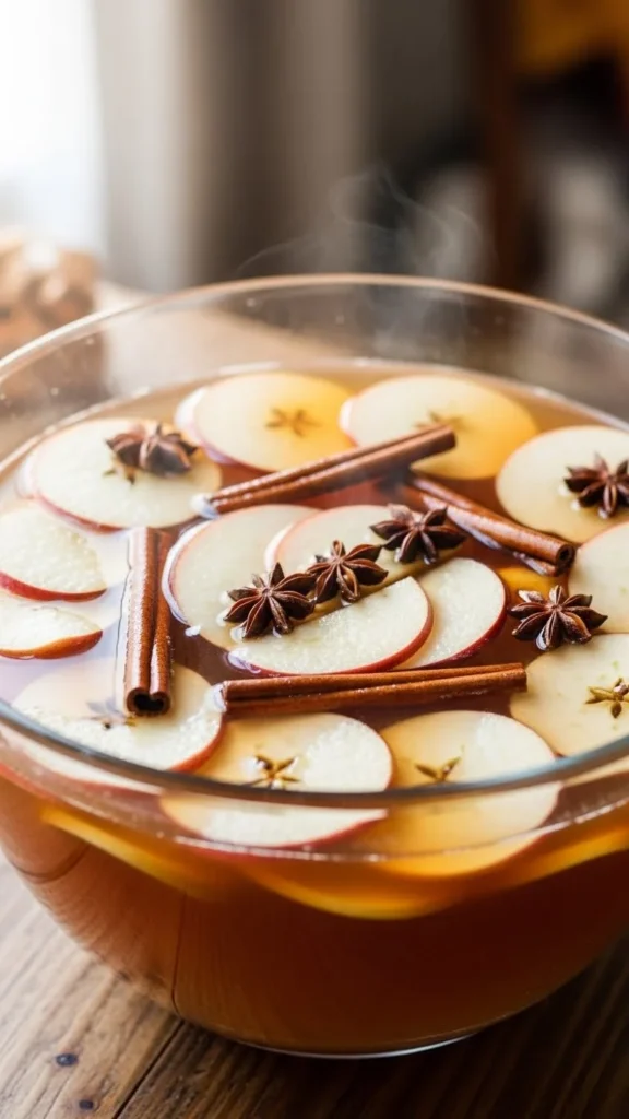 Serve in mugs with spices floating. Garnish with extra apple slices. Great for seasonal parties. Stir before serving. Enjoy with pastries or cookies.