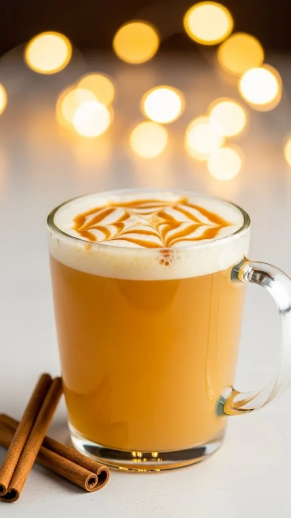 Combining cider with a latte twist makes a warm, creamy, sweet drink perfect for mornings or dessert. The caramel adds richness, and the cider brings seasonal flavor.