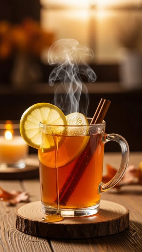 Serve in heatproof mugs. Garnish with a lemon slice and cinnamon stick. Drizzle honey on top for extra sweetness. Pair with light snacks or crackers. Perfect for chilly nights by the fireplace.