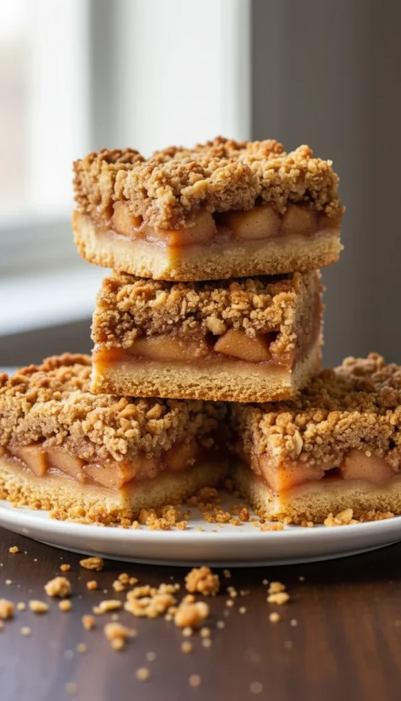 Serve these bars at room temperature for neat slices, or slightly warmed with a fork and a scoop of ice cream for a more classic crisp feel. Dust the tops lightly with powdered sugar for a pretty finish on a platter. They travel well for picnics and parties and make a nice afternoon treat with coffee or tea. Store leftovers in an airtight container at room temperature or chilled if you prefer a firmer texture. These bars are a fun variation when you want apple crisp in snack form.