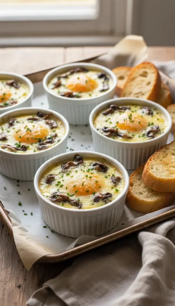 Serve with warm crusty bread or toast for dipping into the soft center.