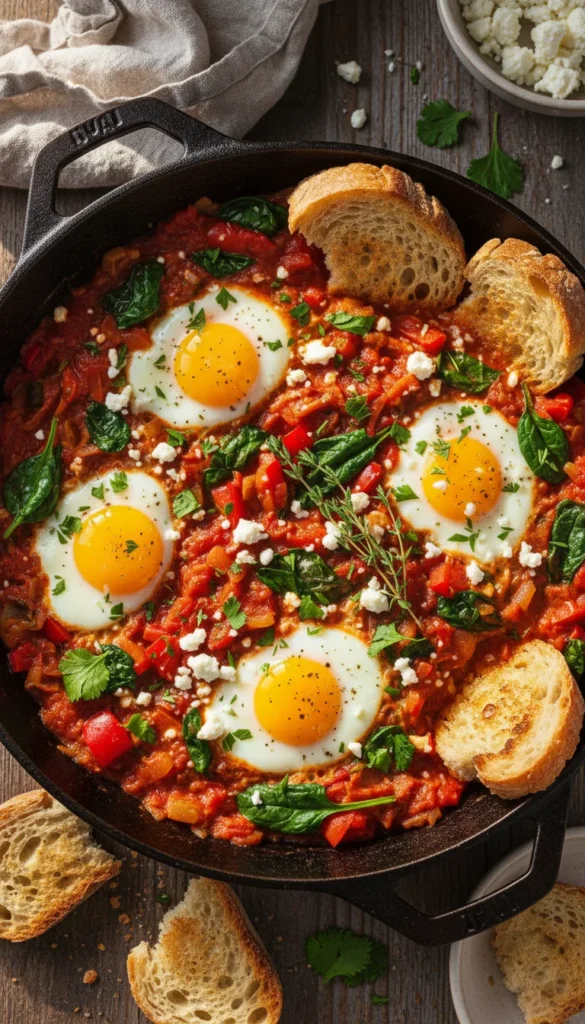 Serve the shakshuka directly from the skillet for a cozy, family-style meal.