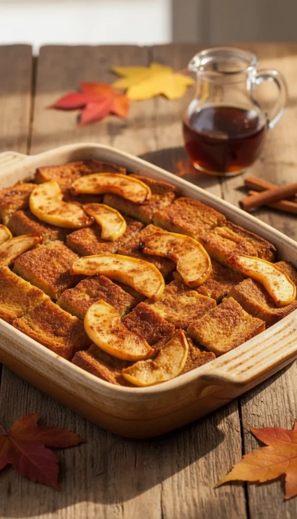 This French toast bake captures everything cozy about fall mornings with soft custardy bread, sweet caramelized apples, and plenty of cinnamon aroma wafting from the oven. It’s assembled in one pan, which makes it perfect for feeding a small crowd without standing at the stove flipping slices. The apples cook right on top, soaking into the bread while forming a glossy, buttery layer. You can prep it the night before, chill it, and simply bake it when you wake up. It’s a great way to use up day-old bread and spare apples from your fruit bowl.