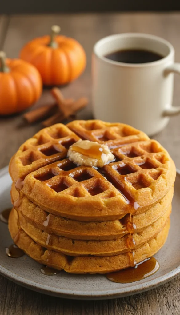 These pumpkin spice waffles bring together fluffy texture, crisp edges, and gentle sweetness to make your kitchen smell like a bakery on a cool fall morning. Pumpkin puree keeps them moist, while warm spices give every bite a comforting flavor. The maple butter adds a silky, slightly sweet finish that melts into the little waffle pockets. You can make a big batch and freeze leftovers for quick weekday breakfasts. They’re simple enough for relaxed weekends but feel special enough for guests.