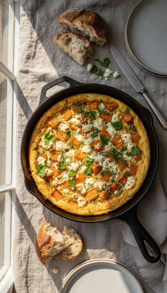 Slice the frittata into wedges and serve directly from the skillet for a cozy, homestyle feel.