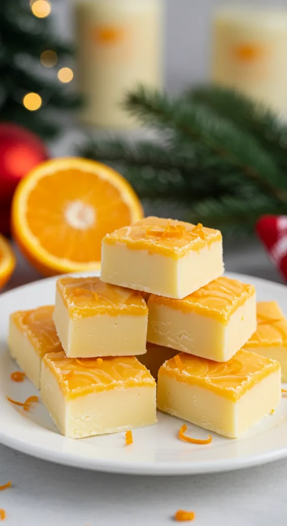 Garnish with orange zest or candied orange peel for a vibrant touch. Serve with iced tea or sparkling water for a refreshing holiday treat. Package in clear boxes with a citrus-themed ribbon for gifting.