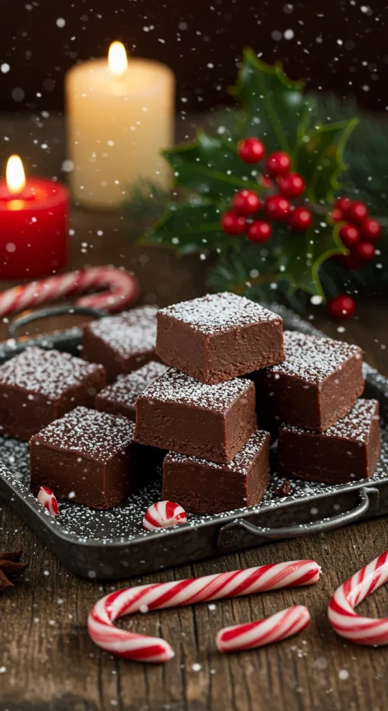 Serve on a tray with coffee or espresso for a festive pick-me-up. Garnish with extra peppermint pieces for crunch. Package in small tins lined with wax paper for a charming holiday gift. Keep refrigerated to maintain the fudge’s firm texture and vibrant flavor.