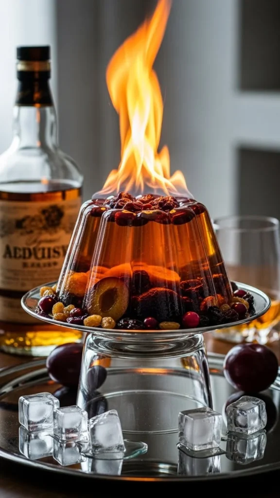 Whiskey drenches this pudding for a smoky depth, reminiscent of toasts by the hearth on cold nights. The spirit infuses boldly, enhancing nuts and fruits. It’s mature and warming, for spirit aficionados. Oak notes linger pleasantly.