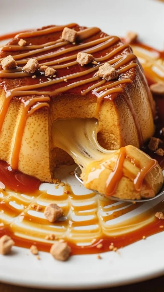 Pour more caramel. Add toffee crunches. Serve hot. Garnish with sea salt. Plate with bananas. Pair with milk.