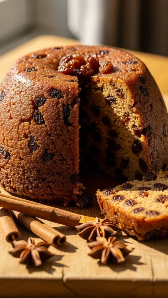 This classic version draws from old family recipes passed down through generations, packed with dried fruits soaked in brandy for deep flavor that reminds you of holidays spent by the fire, where the aroma of spices fills the air and brings everyone together for a slice after dinner. The mix of raisins, currants, and candied peel creates a hearty texture that’s both chewy and tender, while nutmeg and cinnamon add that familiar warmth. It’s the kind of dessert that feels like a hug from grandma, simple yet full of heart, and always ready to be flamed with a bit of extra spirit for show.