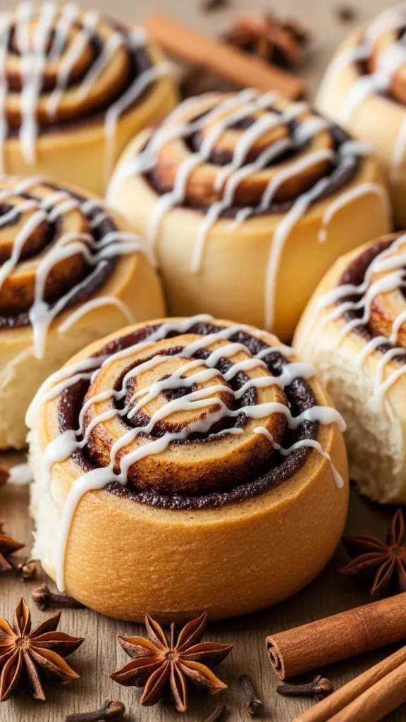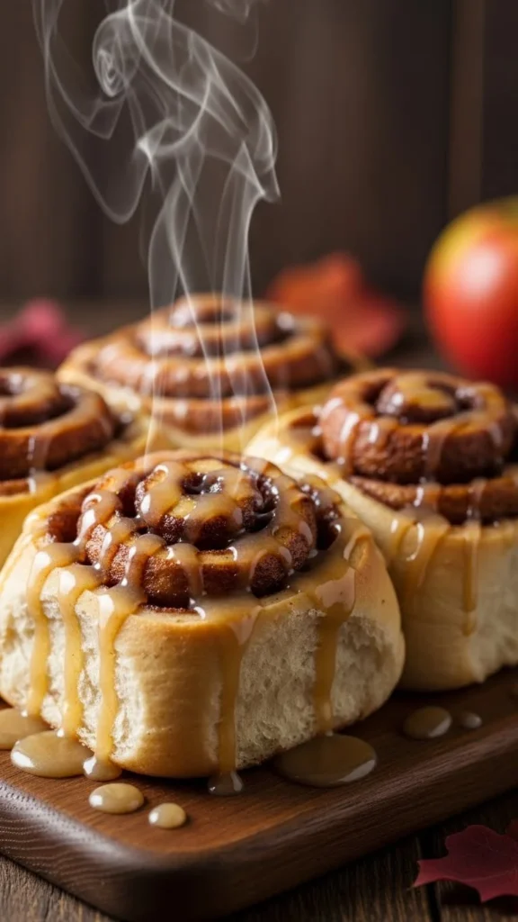 These rolls carry sweet apple flavor blended with warm spices. The cider glaze adds a smooth tanginess that complements the cinnamon beautifully. They feel fresh, seasonal, and perfect for fall or winter mornings.