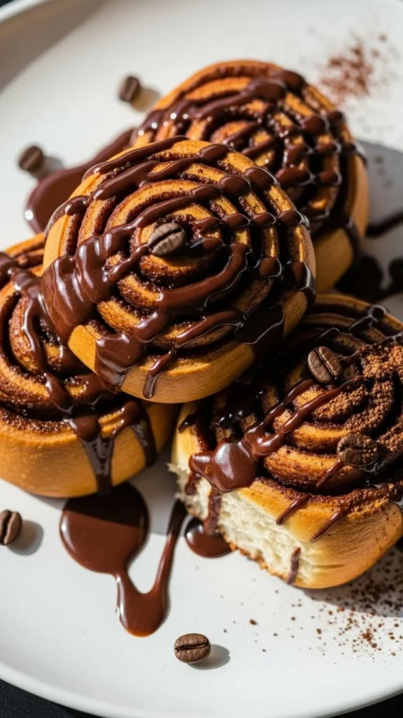 These rolls bring together chocolate and coffee for a smooth, cozy flavor. The filling melts into the dough, and the mocha glaze adds a mellow richness that blends beautifully with warm cinnamon. They’re wonderful for coffee lovers.