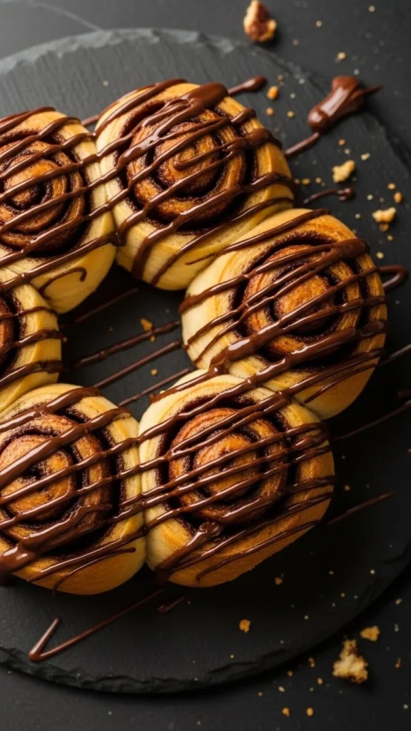 These rolls blend classic cinnamon warmth with deep chocolate flavor. Each layer carries silky chocolate spread that melts into a creamy swirl. They’re soft, rich, and perfect for chocolate lovers who want a holiday treat that feels indulgent yet familiar.