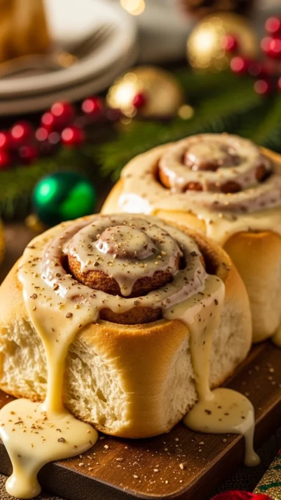 These holiday-inspired rolls are soft, sweet, and scented with nutmeg. The eggnog glaze brings a smooth, custard-like flavor that blends beautifully with warm cinnamon. They’re cozy, nostalgic, and perfect for holiday gatherings or lazy weekend mornings.