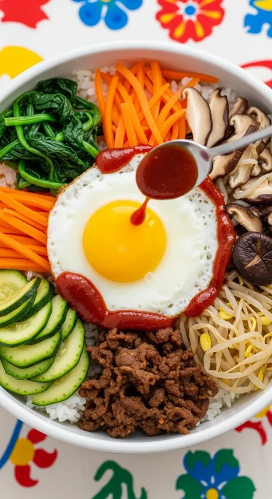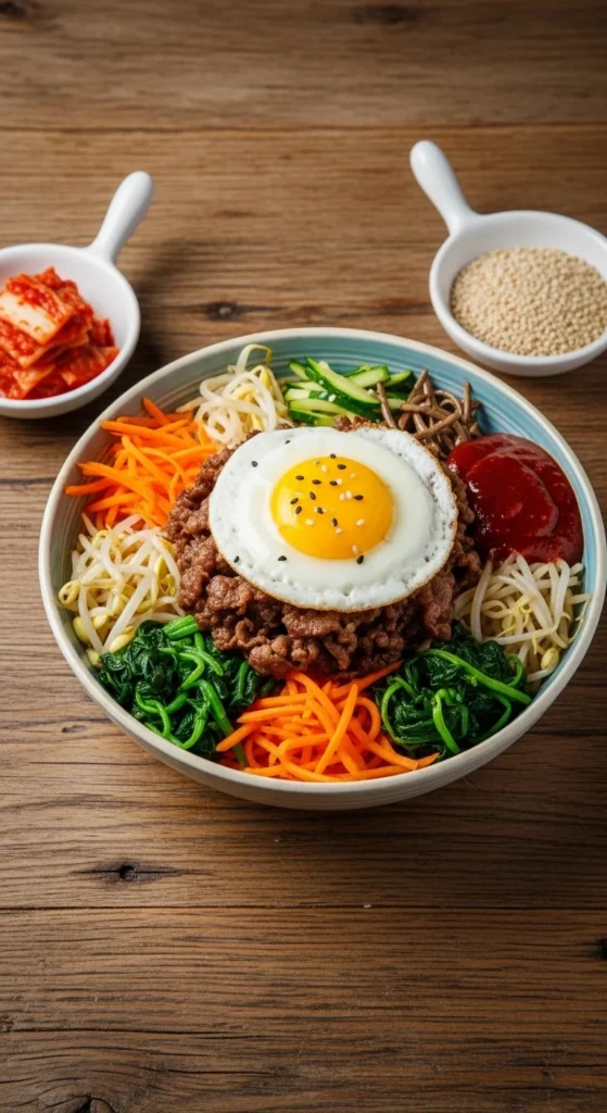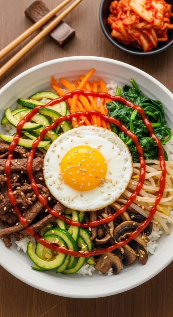 Imagine a bowl bursting with vibrant colors: golden rice, bright veggies, savory beef, and a fiery red gochujang sauce, all topped with a perfectly fried egg. Bibimbap, Korea’s iconic rice bowl, is a feast for the eyes and the taste buds, blending textures and flavors in every bite. This dish is all about balance—crisp, fresh, spicy, and umami—and it’s easier to make at home than you might think. Let’s dive into this recipe for beef bibimbap that’s as stunning as it is delicious, serving 4 with restaurant-worthy flair!