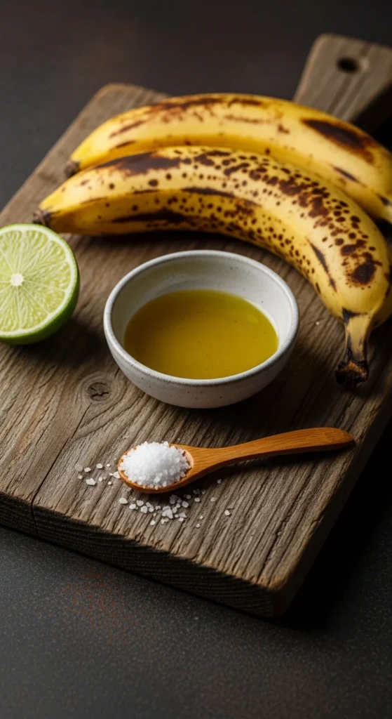 Slice off both ends. Score the skin lengthwise (3–4 lines), then peel back like a jacket. Ripe plantains peel easily—green ones fight back.