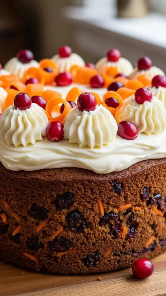 Frost with cream cheese or coconut frosting. Garnish with extra cranberries and toasted coconut. Perfect for brunches, birthdays, or festive celebrations. Slice for individual servings.