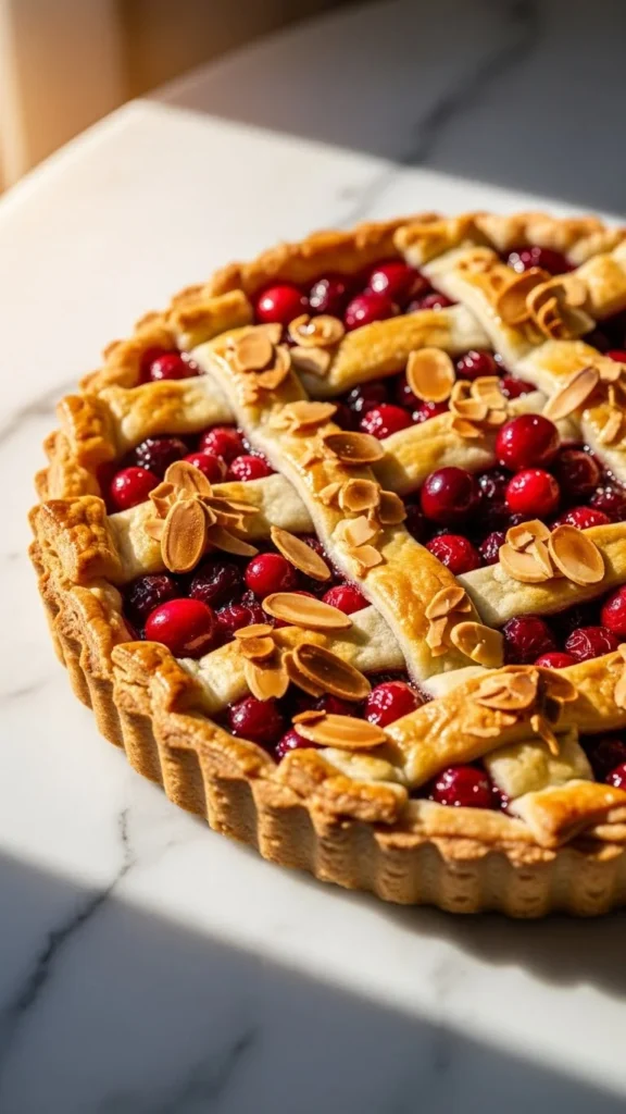 This tart balances the tang of cranberries with the nutty richness of almonds. Its buttery crust and tender almond filling complement the fruit beautifully, offering a dessert that looks stunning on any table. Ideal for entertaining or a quiet dessert indulgence, each slice delivers a mix of textures and flavors.