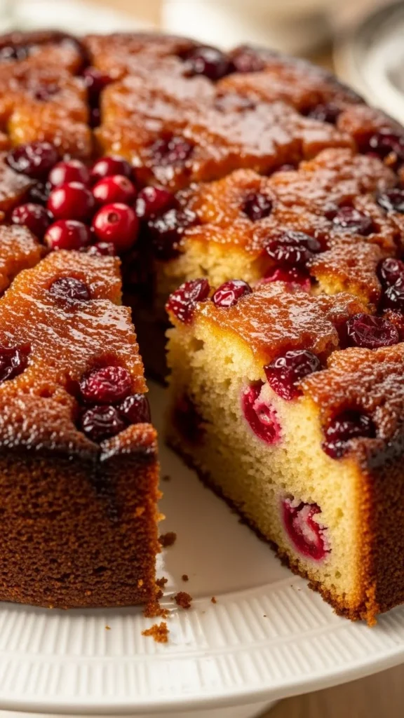 Serve slightly warm or at room temperature. Garnish with whipped cream or fresh mint. Perfect for holiday tables or casual desserts. Slice carefully to maintain cranberry topping.