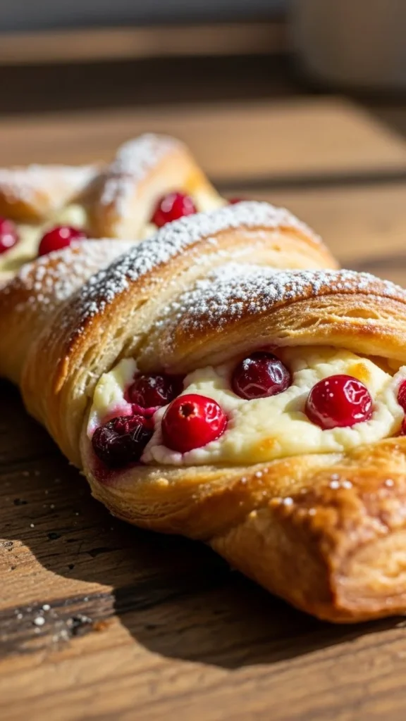 Serve warm for maximum flakiness. Drizzle with a simple glaze or sprinkle additional powdered sugar. Pair with coffee or tea for a luxurious breakfast. Garnish with extra cranberries for a festive touch. Ideal for brunch gatherings or holiday mornings.