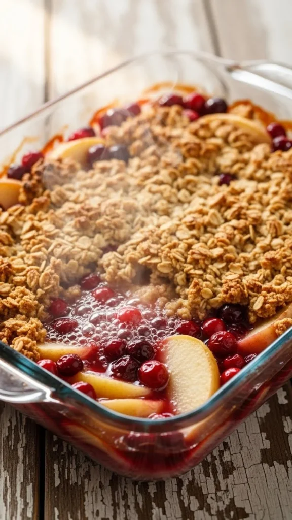 This crisp combines tart cranberries with sweet, tender apples, covered in a buttery oat topping. The mixture of textures—soft fruit and crunchy topping—makes every bite comforting and satisfying. Perfect for cooler months, this dessert smells incredible while baking and tastes just as delightful fresh from the oven.