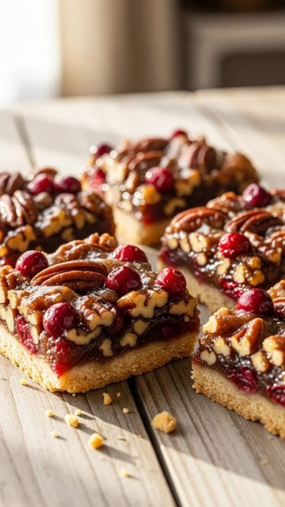 - Fold in cranberries, pour over baked crust, bake 20–25 minutes.