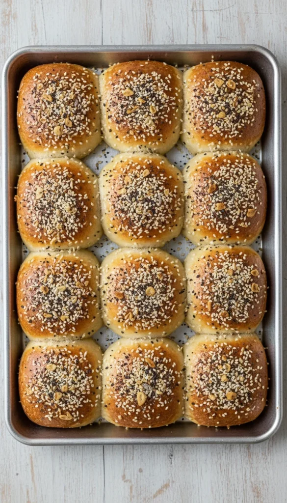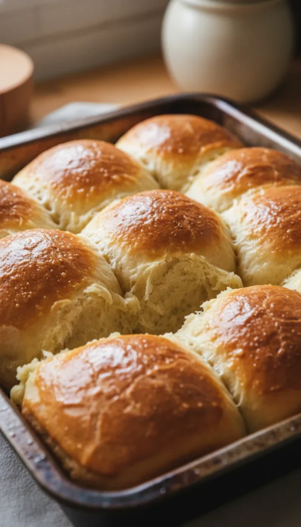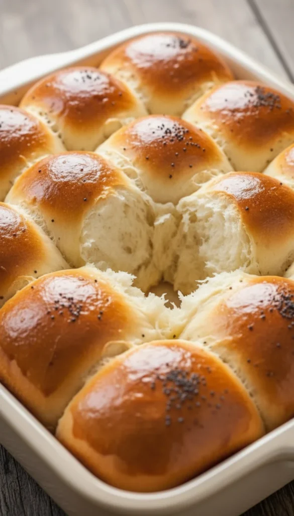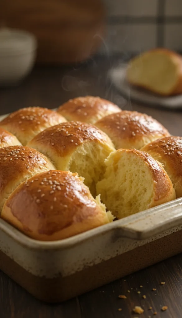 Serve these rolls warm with softened salted butter and small jars of jam or preserves for a slightly sweet touch at brunch or dinner. They pair wonderfully with soups and stir-fries as a soft side, or as a base for mini sandwiches filled with chicken salad or ham and cheese. For holidays, sprinkle a few sesame seeds on top before baking for extra texture. Leftovers are amazing toasted lightly the next morning. Present them in the baking pan or transfer to a serving board for a rustic feel.