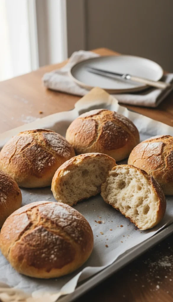 Serve these rustic rolls warm with soups, stews, or saucy pasta dishes where their crisp crust and soft interior can soak up plenty of flavor. Offer butter, olive oil, and maybe a small dish of balsamic vinegar so everyone can choose their favorite pairing. Arrange them in a simple bowl or bread basket, letting their flour-dusted tops show. They work nicely as mini sandwich rolls for sliced meats and cheese. Leftovers toast beautifully the next day for breakfast or as a side with salad.