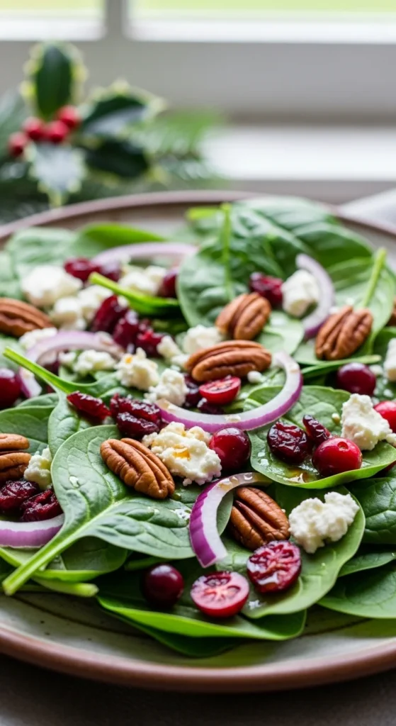 This salad combines the tart burst of fresh cranberries with the earthy crunch of toasted pecans over a bed of tender spinach, creating a refreshing contrast that pairs well with hearty holiday mains like turkey or ham, while the subtle sweetness from a honey balsamic dressing ties everything together in a way that feels both light and satisfying for gatherings.