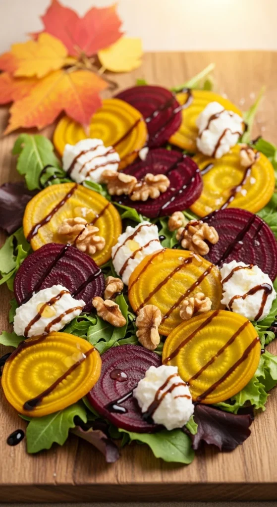 Earthy roasted beets bring a sweet depth to this salad, balanced by tangy goat cheese and crunchy walnuts on a mix of greens, with a balsamic reduction that adds a glossy finish, turning it into a standout side for holiday tables full of warmth and color.