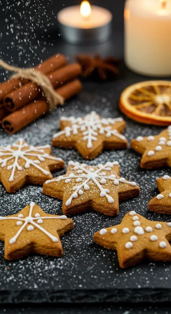 Dust with powdered sugar for a snowy effect and serve on a festive platter with hot cocoa. These stars shine as tree ornaments—poke a hole before baking and thread with ribbon. Pair with a cinnamon stick for a rustic touch, perfect for holiday parties or cozy evenings by the fire.