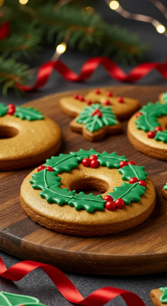 Display these wreaths on a festive platter with fresh holly leaves for a natural touch. Serve with mulled wine or eggnog for a holiday vibe. They’re perfect for Christmas parties or as a decorative edible gift, tied with ribbon for extra charm.