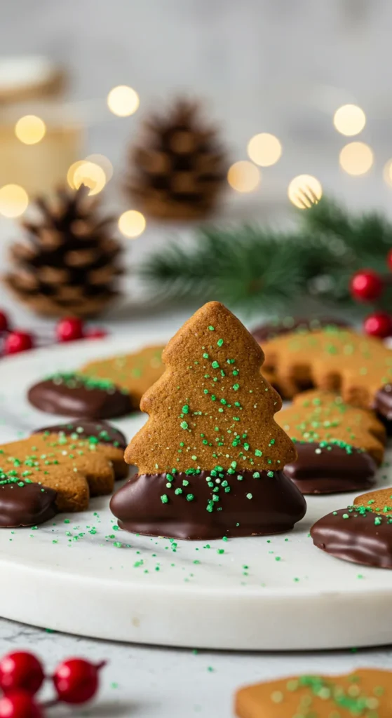 These gingerbread trees bring a decadent twist with a rich chocolate coating that balances the spicy warmth of ginger and molasses. The combination of textures—crisp cookie and smooth chocolate—makes each bite irresistible. They’re easy to customize with sprinkles or nuts, making them a fun project for family baking days or holiday gift boxes.
