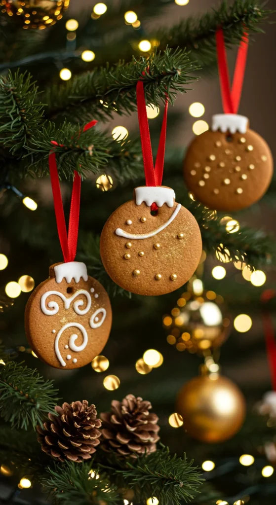 These ornament-shaped cookies are a glamorous take on gingerbread, with edible gold dust adding a touch of luxury to the classic spiced flavor. Their round shape and elegant icing make them perfect for hanging on the tree or serving as a show-stopping holiday treat.