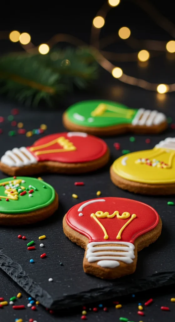 These light bulb-shaped cookies are a bright, colorful take on gingerbread, with vibrant icing that mimics Christmas lights. The spiced dough provides a warm base for the playful design, making them a fun addition to holiday parties or as a creative baking project.