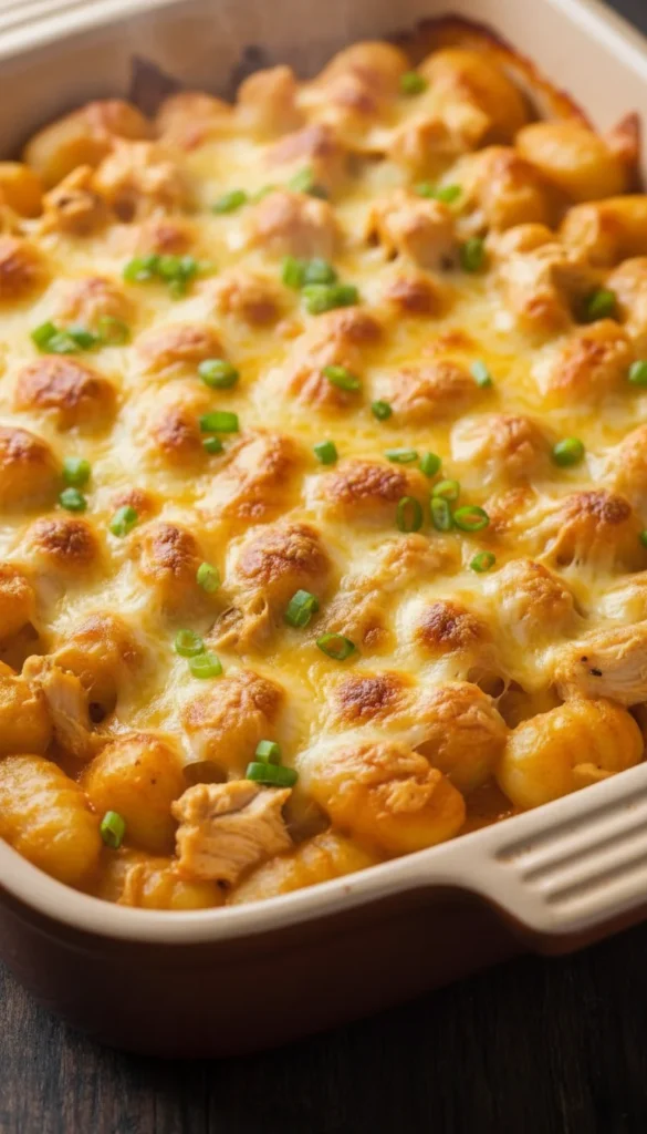 This baked four-cheese gnocchi gratin is a cheese lover’s dream, combining layers of stretchy mozzarella, tangy Parmesan, creamy ricotta, and bold fontina into a bubbling dish you can scoop out with a big spoon. The gnocchi soak up the sauce as they bake, turning tender and fluffy beneath a crisp, blistered top. It feels like a cross between mac and cheese and a cozy Italian casserole, perfect for feeding a hungry crowd or enjoying as hearty comfort food. You can assemble it in advance and bake just before dinner, making it ideal for busy days or casual entertaining.