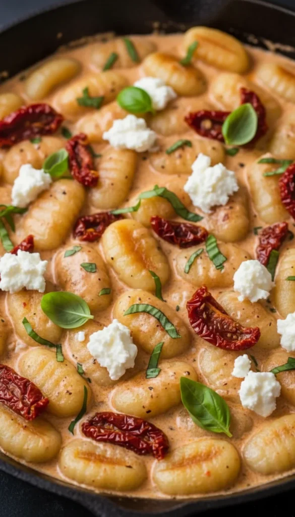 Serve this sun-dried tomato goat cheese gnocchi in shallow bowls, making sure every portion has plenty of sauce and tomato pieces. Pair it with a simple arugula salad dressed with lemon and olive oil for a fresh bite. Offer extra goat cheese crumbles on the side for those who enjoy stronger tang. Garlic bread or toasted ciabatta is great for scooping up the creamy sauce. This dish is a lovely option when you want bold flavor without a lot of complicated steps.