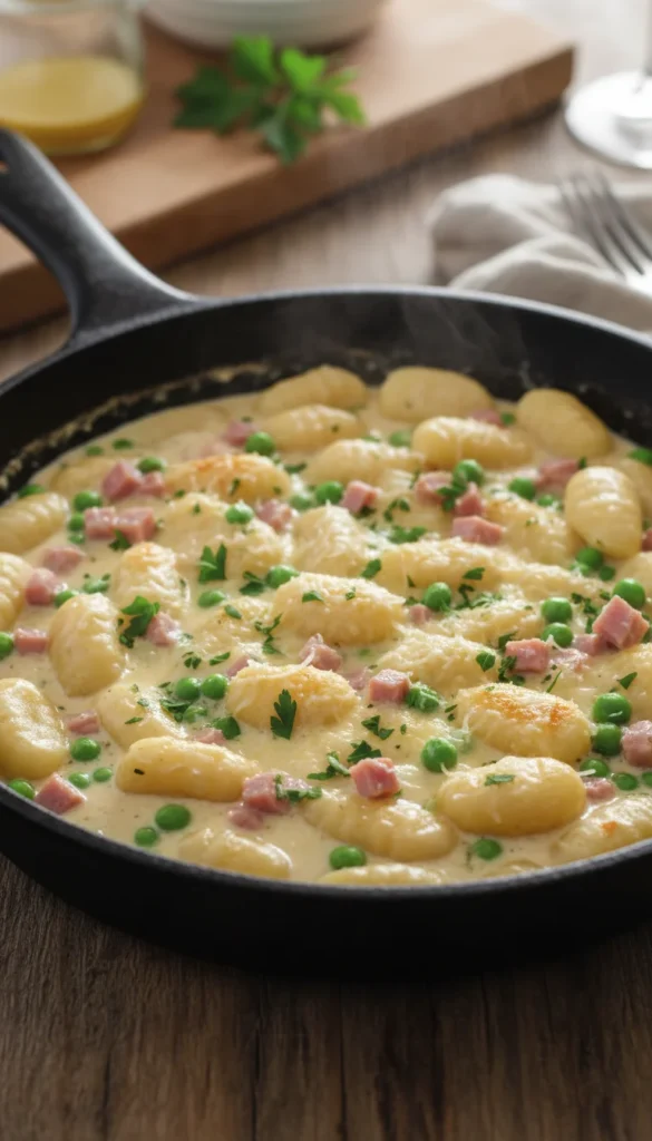 Creamy Ham and Pea Gnocchi Skillet