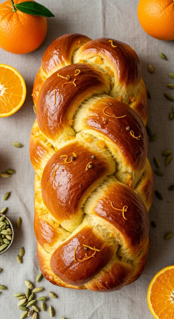 This fragrant bread blends warm cardamom with bright orange zest, creating a unique holiday loaf that’s both aromatic and flavorful. Its soft, airy texture and subtle sweetness make it a versatile addition to any festive spread, from breakfast to dinner.
