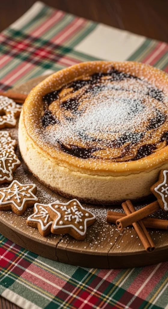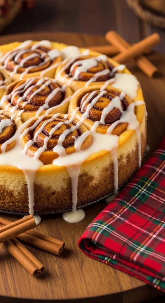 This cheesecake captures the gooey, spiced magic of a cinnamon roll in a creamy, indulgent dessert. Its graham cracker crust and cinnamon-swirled filling make it a cozy, crowd-pleasing treat for holiday mornings or evening gatherings.