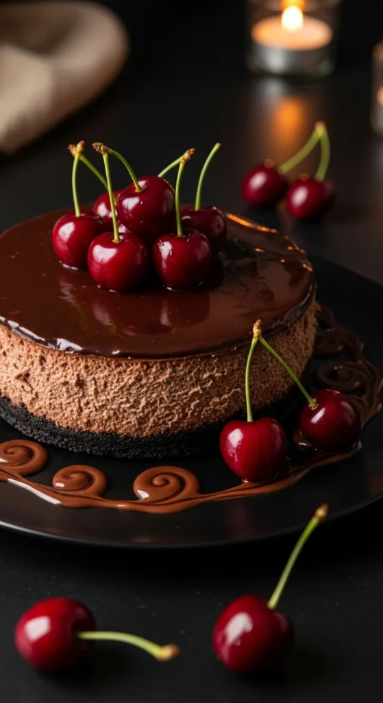 Garnish with fresh cherries and a chocolate drizzle for a luxurious look. Serve on a sleek platter to highlight its richness. Pair with a bold red wine for a sophisticated holiday treat. Great for Christmas parties or elegant dinners.