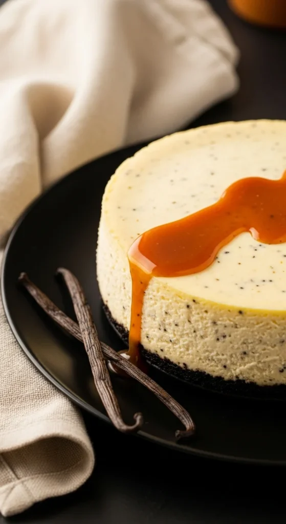 This sophisticated cheesecake blends the warm, oaky notes of bourbon with fragrant vanilla beans, creating a luxurious holiday dessert. Its creamy texture and buttery crust make it a perfect finale for festive celebrations.