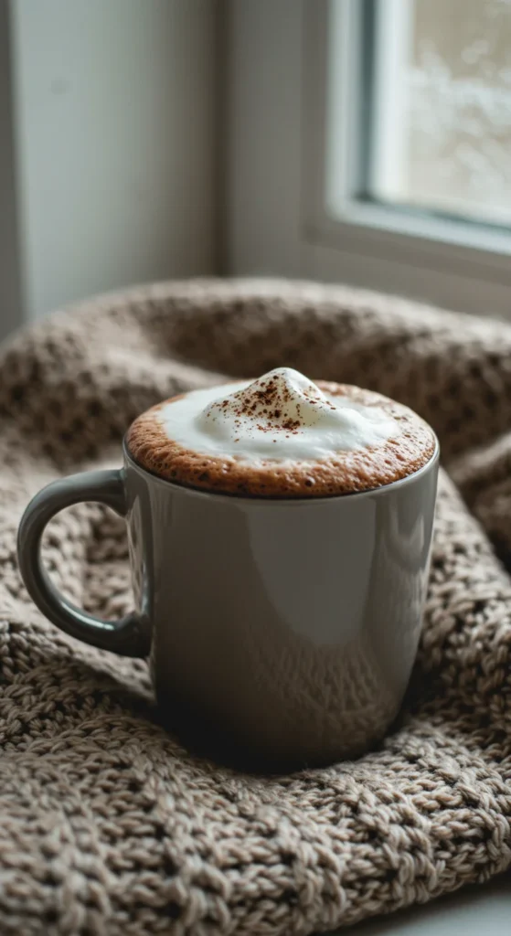 Top with a generous dollop of whipped cream and a sprinkle of cocoa powder for a luxurious touch. Serve with a cinnamon stick for stirring or pair with shortbread cookies for a cozy treat. Perfect for a quiet winter morning or a movie night in.