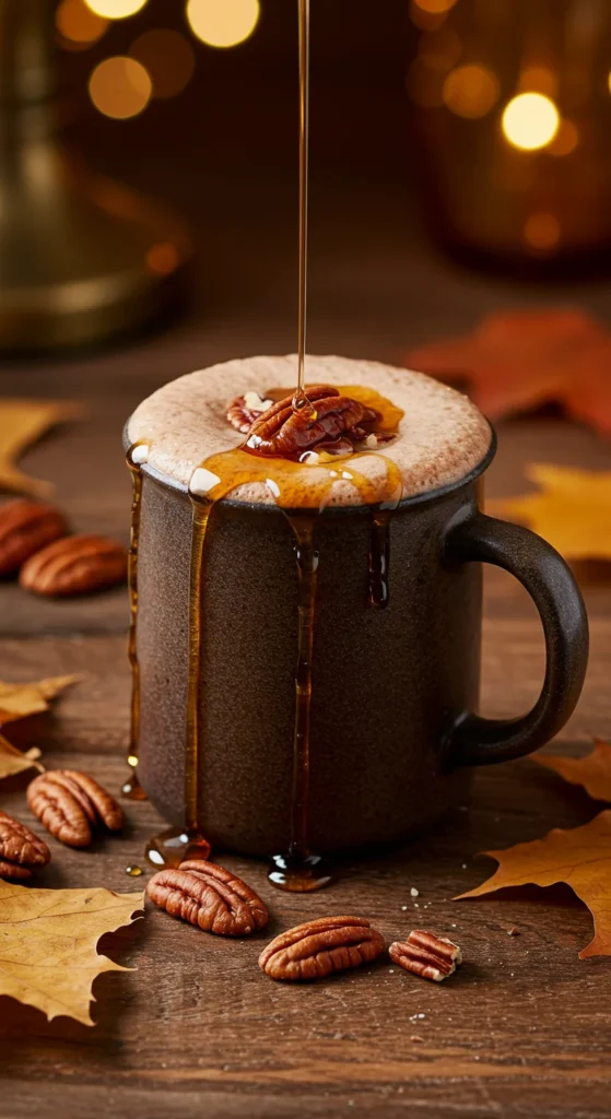 Drizzle with extra maple syrup and top with chopped pecans. Serve with pumpkin bread or cinnamon rolls for a cozy fall breakfast. This drink is perfect for Thanksgiving mornings or chilly autumn nights.
