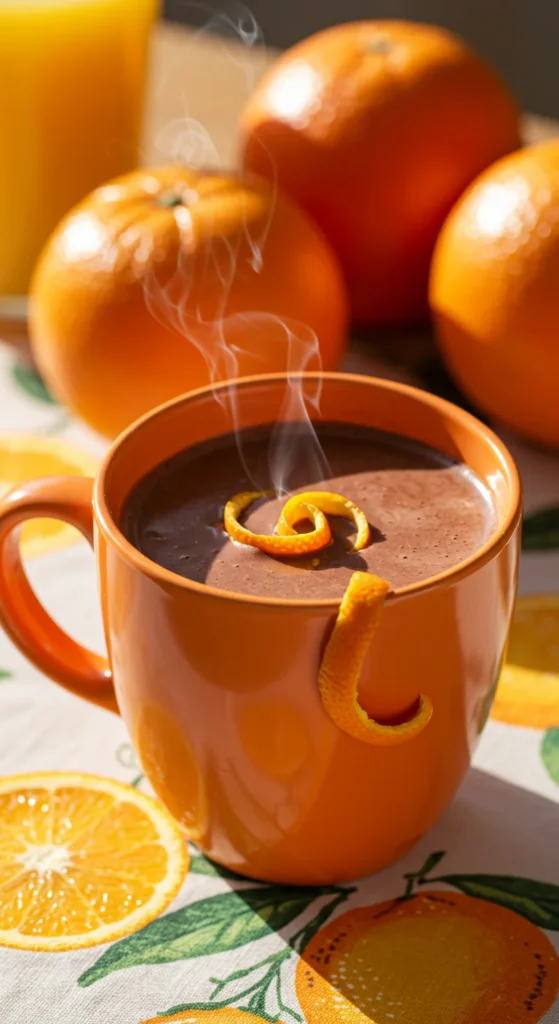 This refreshing recipe pairs the bright, citrusy zing of orange zest with rich chocolate for a lively twist. It’s perfect for those who love a hint of fruit in their cozy drinks.