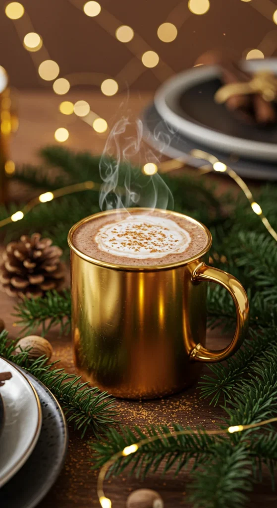 Dust with freshly grated nutmeg and top with whipped cream. Serve with gingerbread or sugar cookies for a festive touch. Perfect for Christmas parties or a cozy holiday evening.