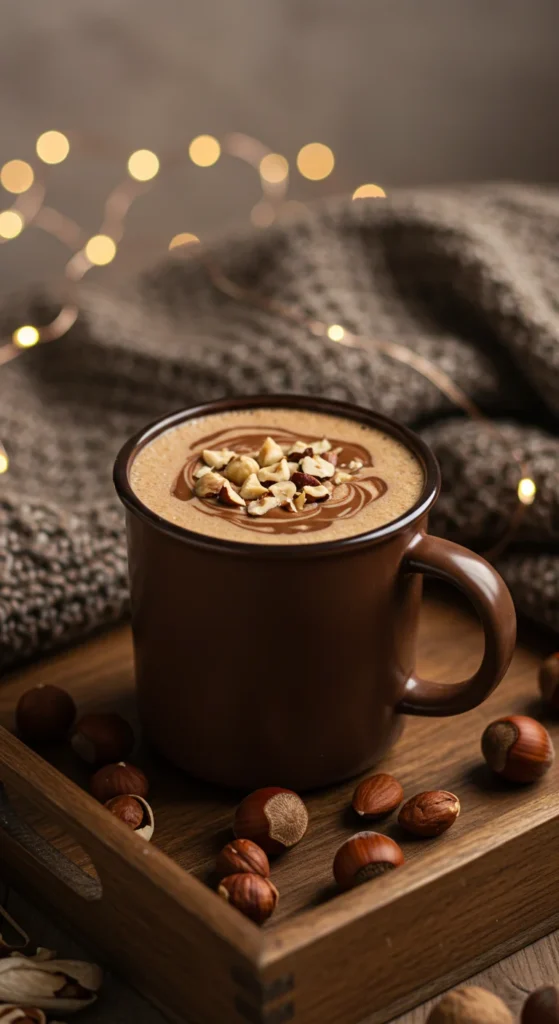 Top with chopped roasted hazelnuts and a drizzle of hazelnut spread. Serve with biscotti or croissants for a cozy breakfast vibe. This drink is perfect for fall mornings or a relaxing evening by the fire.