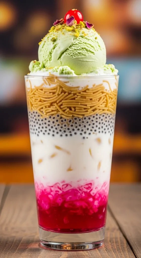 Picture this: a tall glass brimming with vibrant layers of rose-scented syrup, creamy milk, slippery vermicelli, and jewel-like basil seeds, topped with a scoop of velvety ice cream. Falooda isn’t just a dessert—it’s a sensory experience, a refreshing escape from the ordinary. This South Asian treat is like a party in a glass, blending textures and flavors in a way that feels indulgent yet light. Ready to whip up a falooda that’s as unique as you are? Let’s dive into this fun, easy recipe that’ll have your taste buds dancing.
