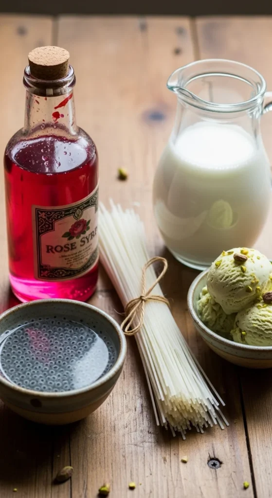 - Falooda vermicelli: ½ cup (or thin rice noodles if you can’t find falooda-specific ones).