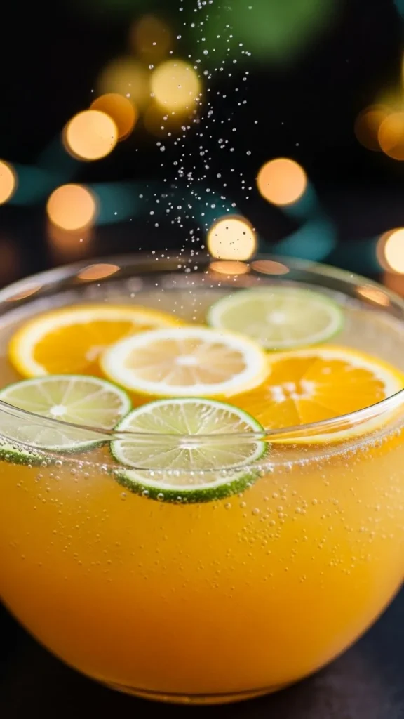 Garnish with orange wheels or sugared cranberries. Serve in tall glasses with striped paper straws. Ideal for afternoon parties.